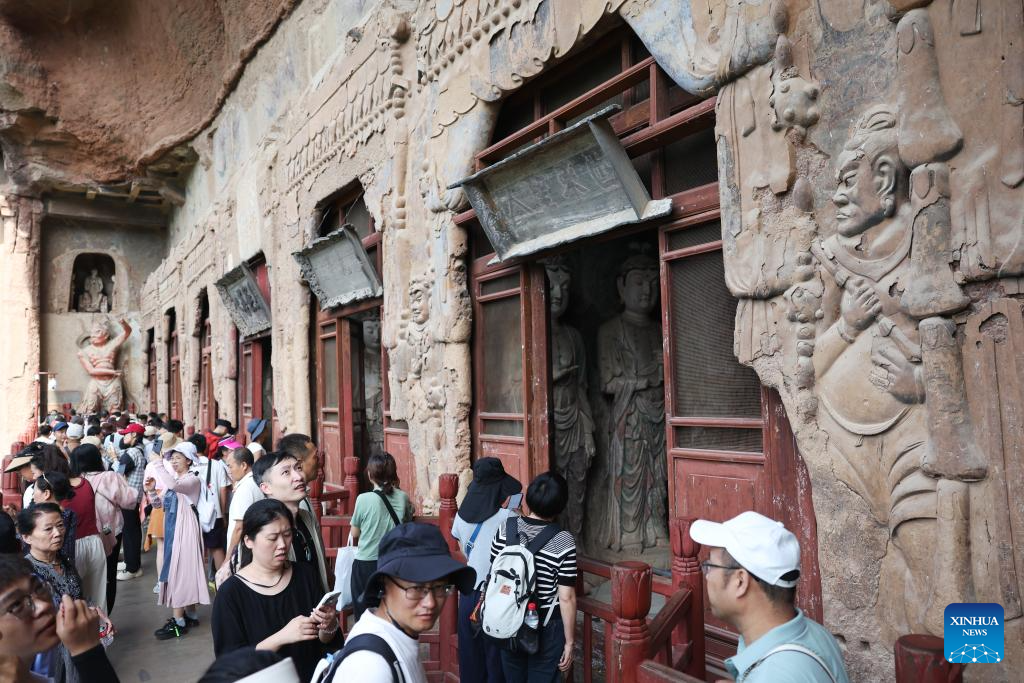 Tourists visit Maiji Mountain Grottoes in Tianshui City, northwest China's Gansu Province on July 16, 2025. (Xinhua/Chen Bin)