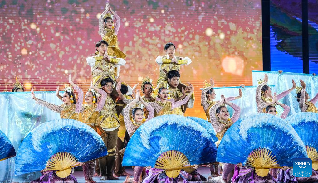 Thai artists are pictured during a performance for international culture and art exchange as part of the 2025 China-ASEAN Education Cooperation Week in Gui'an New Area, southwest China's Guizhou Province, July 25, 2025. The performance was staged here on Friday, aiming to drive for in-depth integration among sectors of education, sports, culture and tourism. (Xinhua/Tao Liang)