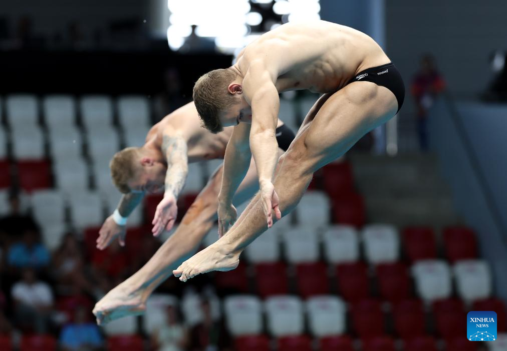 Timo Barthel/Moritz Wesemann of Germany compete during the men's 3m synchronised final of diving at the World Aquatics Championships in Singapore, July 28, 2025. (Xinhua/Luo Yuan)