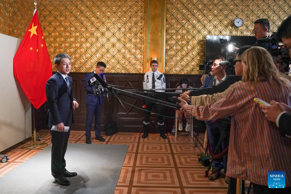 Li Chenggang, China international trade representative with the Ministry of Commerce and vice minister of commerce, briefs the press following the new round of economic and trade talks between China and the United States in Stockholm, Sweden, July 29, 2025. The trade and economic teams of China and the United States held in-depth, candid and constructive exchanges over important topics of mutual interest, Li said here on Tuesday. (Xinhua/Peng Ziyang)