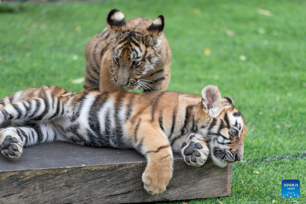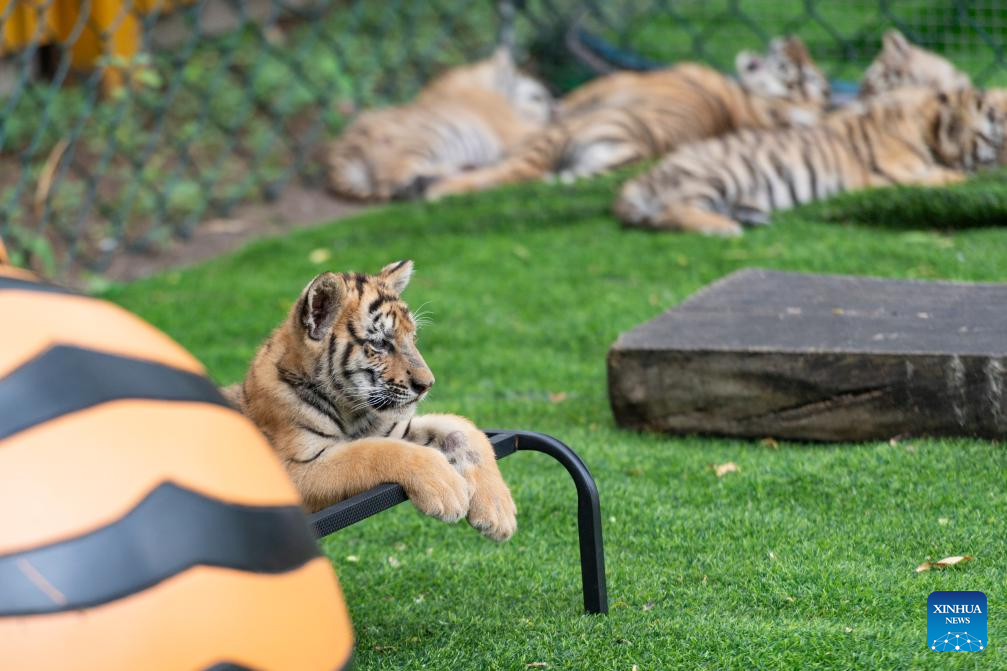 Tiger cubs are seen at the Siberian Tiger Park in Harbin, northeast China's Heilongjiang Province, July 29, 2025. A series of events, which marks the International Tiger Day, was held here on Tuesday. (Xinhua/Xie Jianfei)