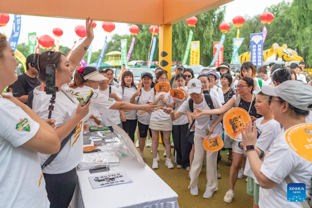 People take part in a tiger knowledge quiz at the Siberian Tiger Park in Harbin, northeast China's Heilongjiang Province, July 29, 2025. A series of events, which marks the International Tiger Day, was held here on Tuesday. (Xinhua/Xie Jianfei)