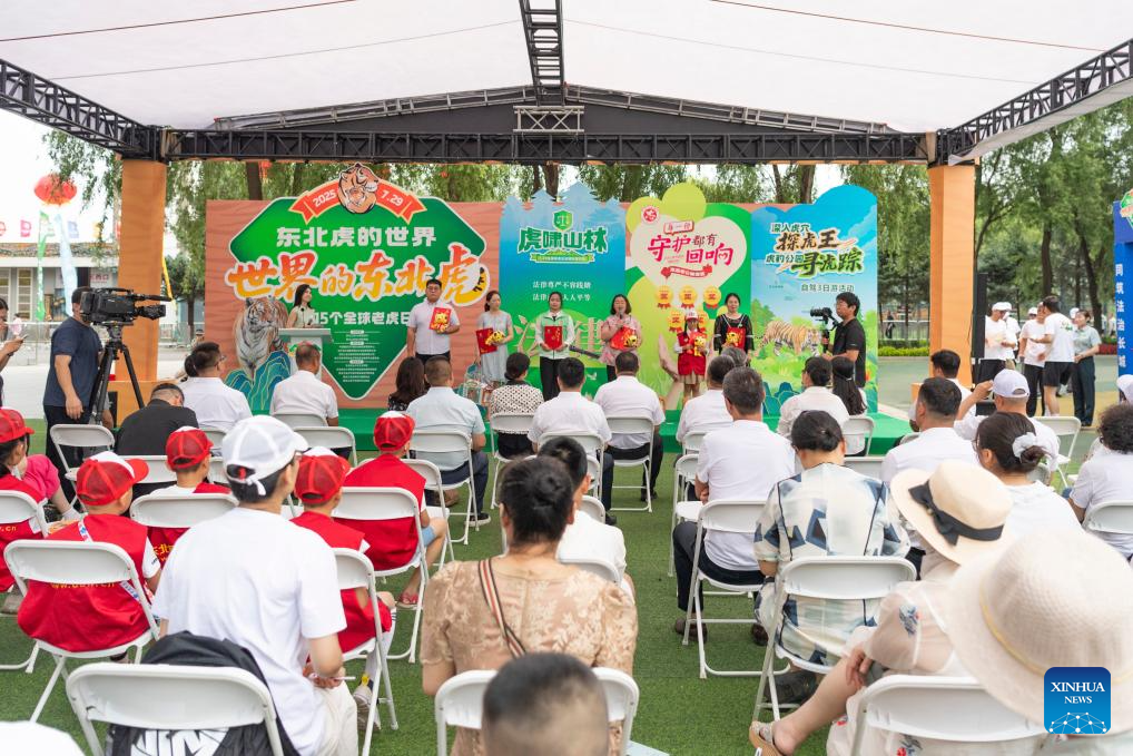 Tiger conservation volunteers are presented with certificates and deliver speeches at the Siberian Tiger Park in Harbin, northeast China's Heilongjiang Province, July 29, 2025. A series of events, which marks the International Tiger Day, was held here on Tuesday. (Xinhua/Xie Jianfei)