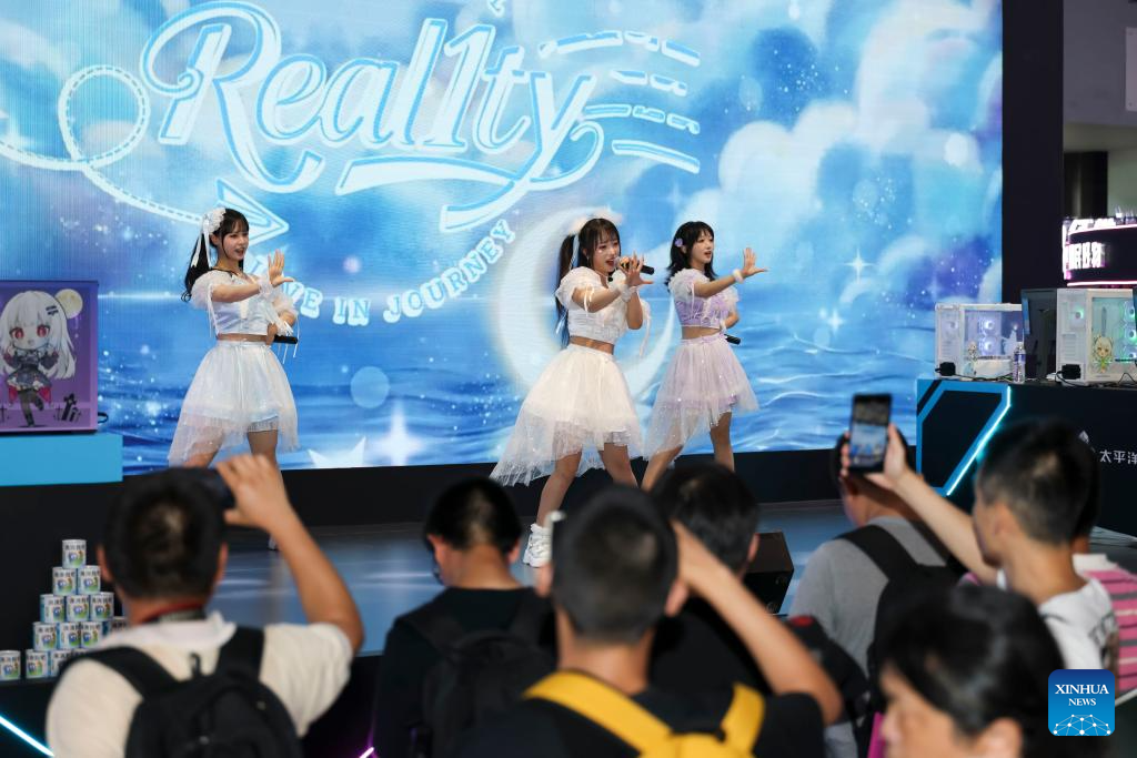 People watch performance at ChinaJoy 2025 in Shanghai, east China, Aug. 1, 2025. The 22nd China Digital Entertainment Expo and Conference (ChinaJoy 2025) kicked off in Shanghai on Friday, bringing together over 743 exhibitors from 37 countries and regions worldwide. (Xinhua/Wang Xiang)