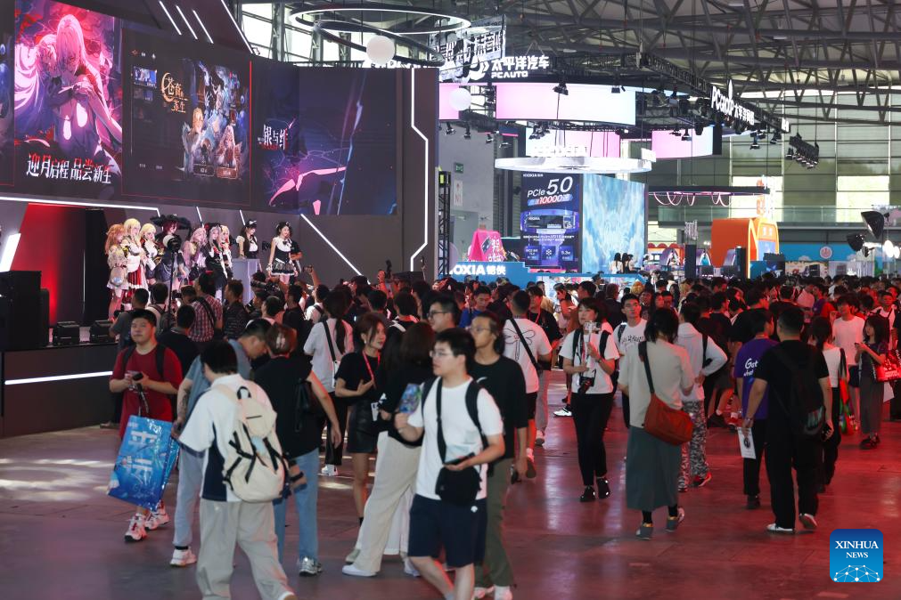 People visit ChinaJoy 2025 in Shanghai, east China, Aug. 1, 2025. The 22nd China Digital Entertainment Expo and Conference (ChinaJoy 2025) kicked off in Shanghai on Friday, bringing together over 743 exhibitors from 37 countries and regions worldwide. (Xinhua/Wang Xiang)