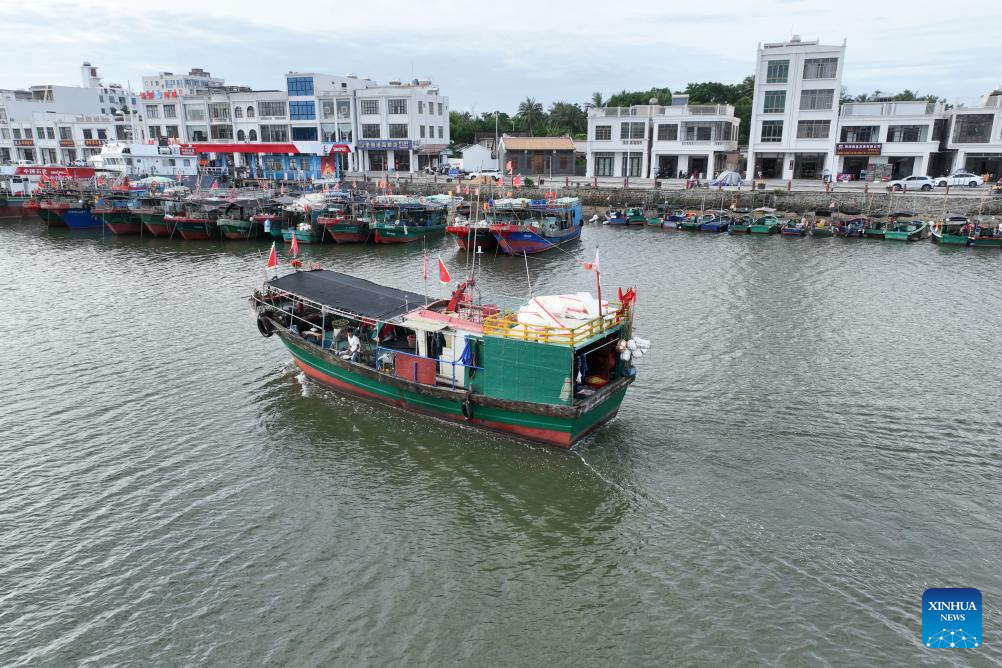 A drone photo taken on July 22, 2025 shows the Tanmen Port in Qionghai, south China's Hainan Province. (Xinhua/Zhang Liyun)