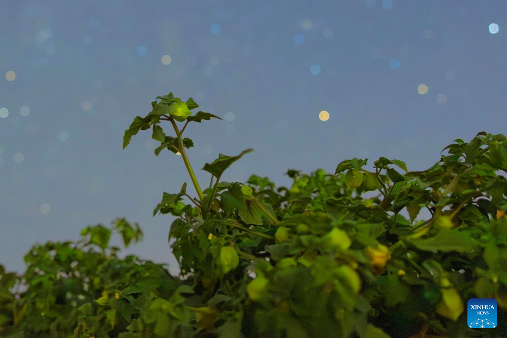 This photo taken on July 23, 2025 shows ground cherries under the starry sky in Jixian County of Shuangyashan City, northeast China's Heilongjiang Province. Heilongjiang Province, a major agricultural producer dubbed "China's grain barn," have seen its crops enter the ripening stage recently. (Photo by Han Yang/Xinhua)