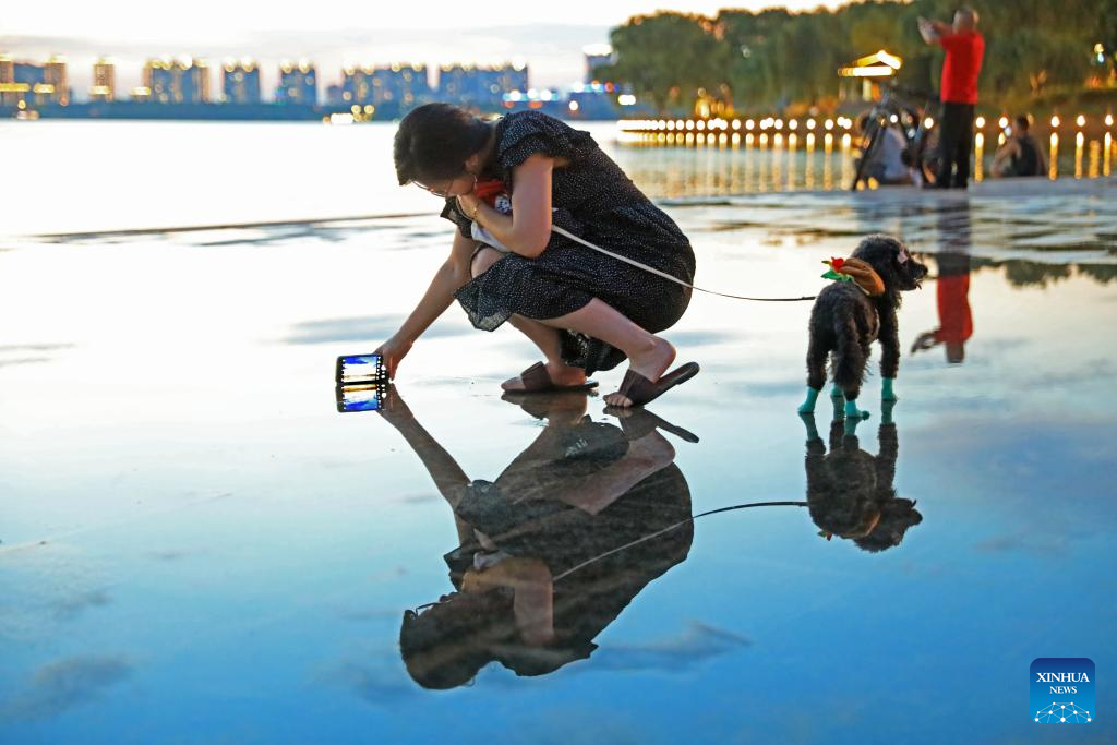 A citizen takes photos of the scenery after rain in Yixing City, east China's Jiangsu Province, June 30, 2025. (Photo by Ding Huanxin/Xinhua)