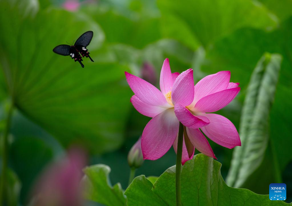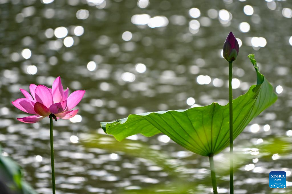 This photo taken on July 1, 2025 shows lotus flowers at a park in Huai'an, east China's Jiangsu Province. (Photo by Liang Debin/Xinhua)