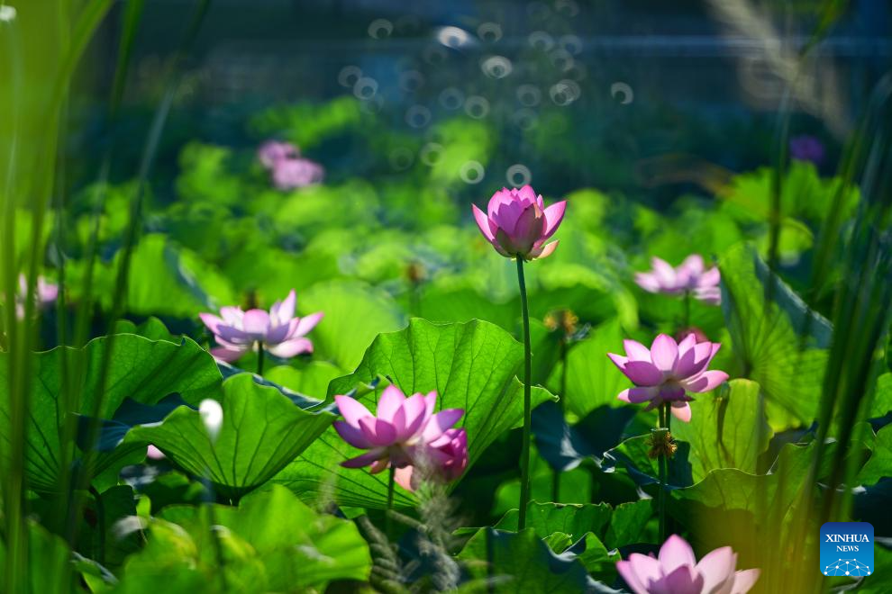 This photo taken on July 19, 2025 shows lotus flowers at a park in Kunshan City, east China's Jiangsu Province. (Photo by Wang Xuzhong/Xinhua)