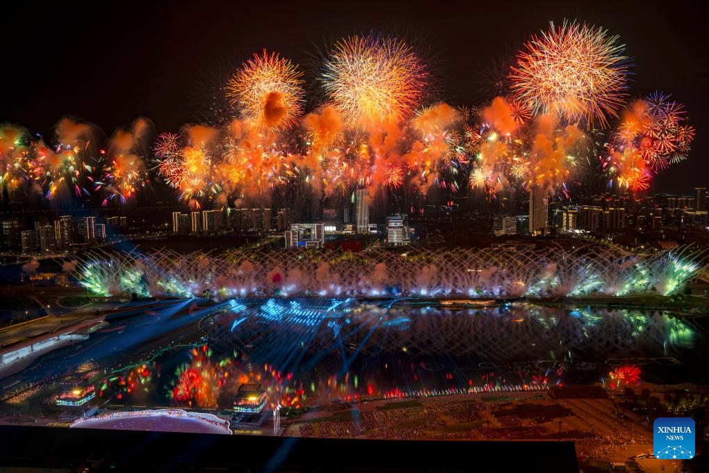 Fireworks are seen during the opening ceremony of the World Games 2025 in Chengdu, southwest China's Sichuan Province, on Aug. 7, 2025. (Xinhua/Sun Fei)