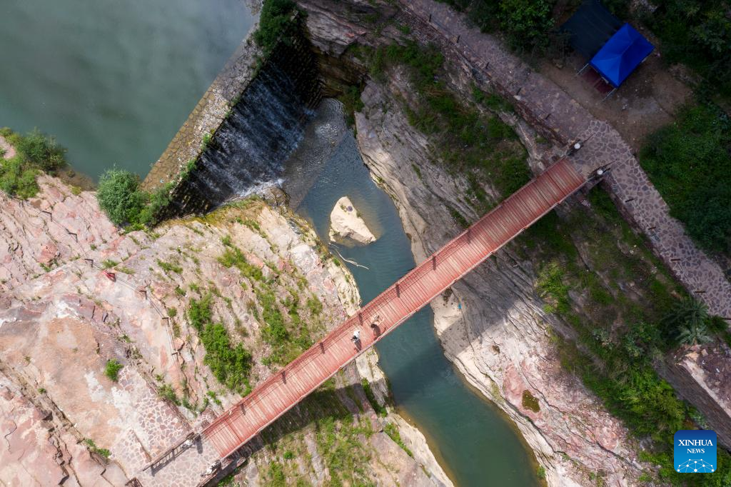 Tourists visit Hongni Village in Pingshun County, north China's Shanxi Province, Aug. 6, 2025. Hongni Village has ushered in its peak tourism period. The village, nestled deep in the Taihang Mountains, has a long history and is known as the "ancient village on the cliff."