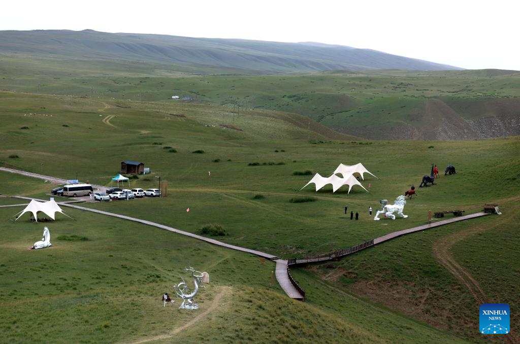 This photo taken on Aug. 6, 2025 shows a view of Kunlun Mountains scenic area in Qira County, northwest China's Xinjiang Uygur Autonomous Region. Known for its unique natural beauty and rich cultural heritage, Kunlun Mountains scenic area has attracted numerous visitors during summer vacation. (Xinhua/Cai Guodong)