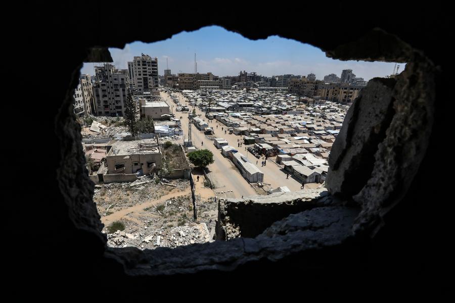 Tents for displaced Palestinians are seen at a temporary shelter in Gaza City, on Aug. 4, 2025.(Photo by Rizek Abdeljawad/Xinhua)