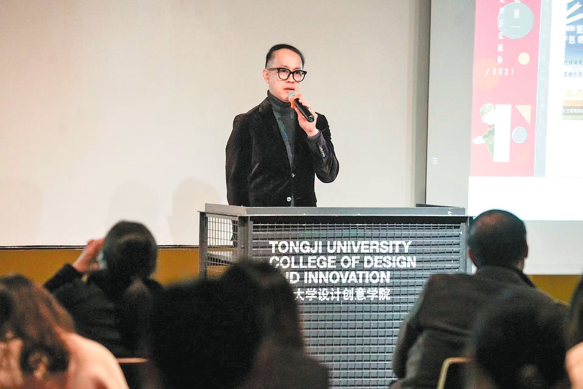 Chan, founder of the designing and manufacturing company Saint John, delivers a speech at the College of Design and Innovation at Tongji University, Shanghai. CHINA DAILY