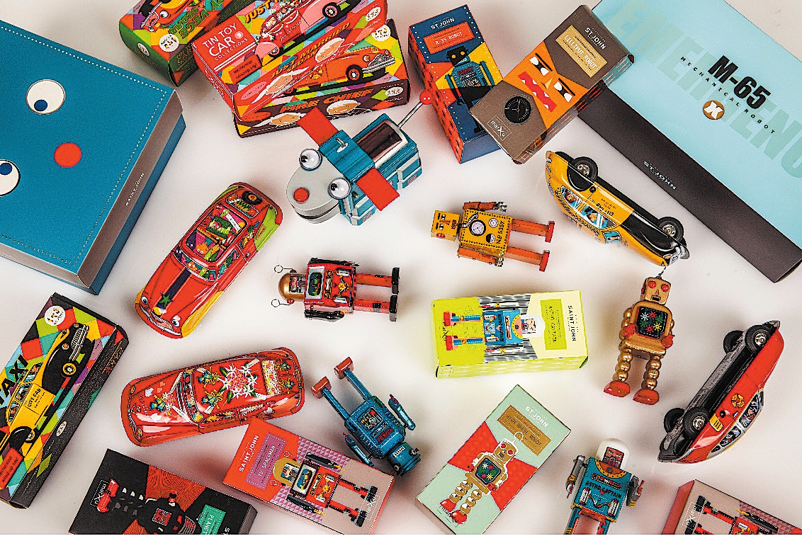 Collector Marvin Chan's company in Shanghai produces retro-looking tin toys, including cars and robots. CHINA DAILY