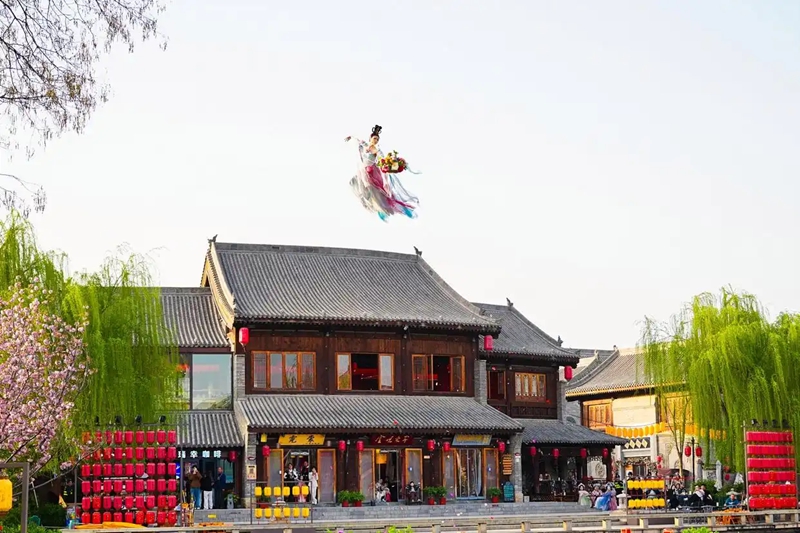 A spectacular cultural performance blending traditional culture and modern artistry, named "The Celestial Maiden Scattering Flowers," is creating a cultural tourism sensation in Luoyi Ancient City, located in Luoyang, central China's Henan Province.
