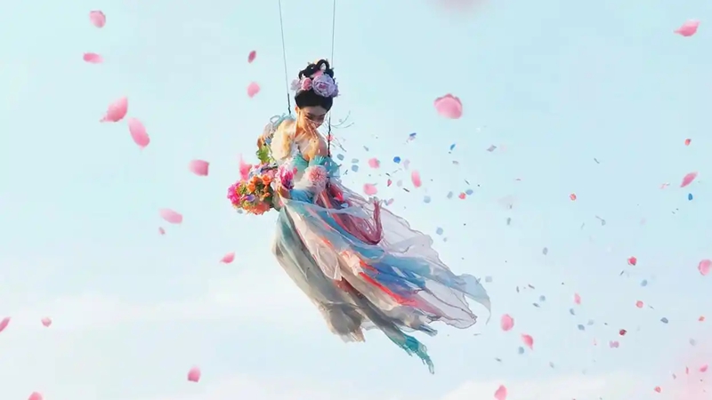 The performance is inspired by a classic Buddhist story that involves a celestial maiden showering Bodhisattvas and their disciples with petals to test their cultivation.