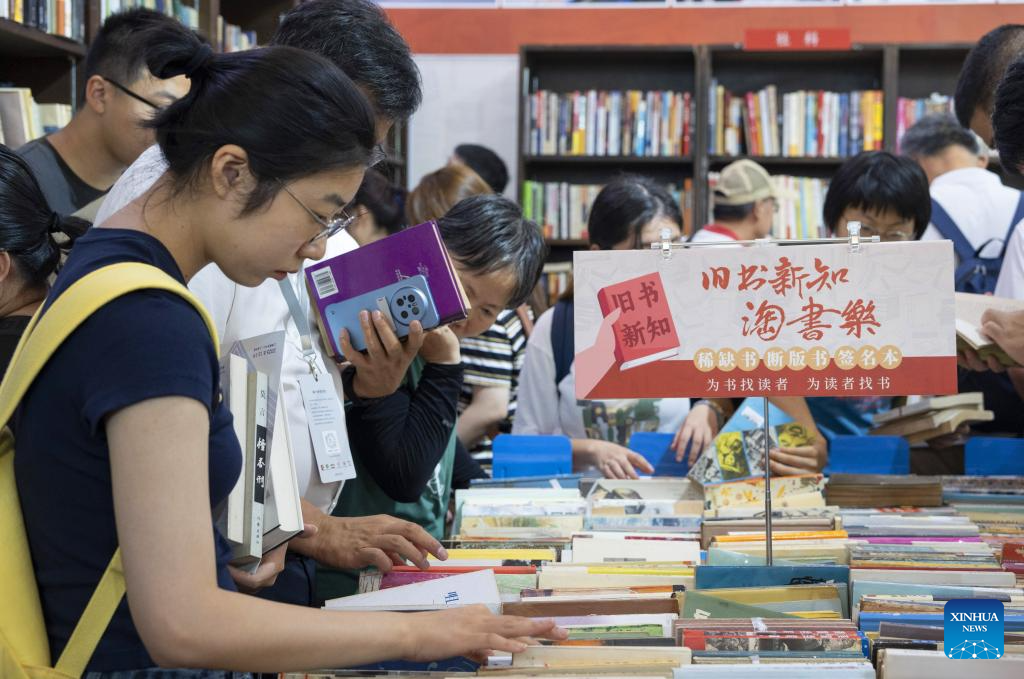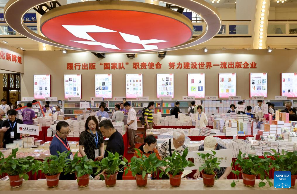 People visit the 2025 Shanghai Book Fair in Shanghai, east China, Aug. 13, 2025. The book fair kicked off on Wednesday and will last until Aug. 19. (Photo by Zhang Yue/Xinhua)