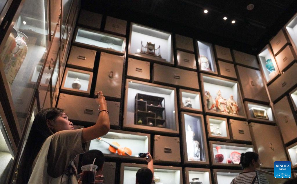 People visit a film museum built on the former site of Changchun Film Studio in Changchun, northeast China's Jilin Province, Aug. 7, 2025. Since the start of the summer vacation, the film museum has attracted visitors with film resources, with peak daily visitor numbers exceeding 8,000. (Xinhua/Yan Linyun)