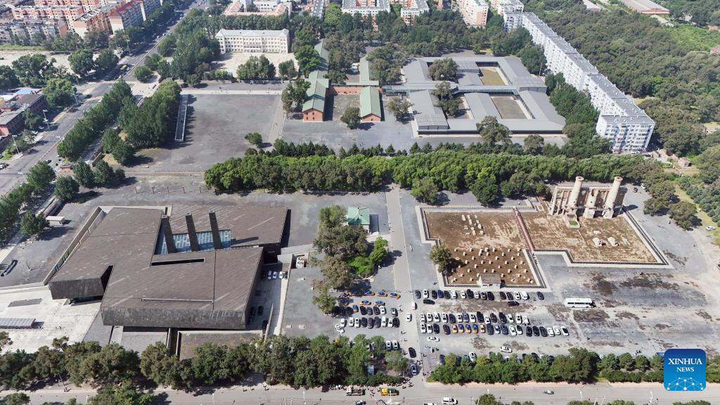 An aerial drone photo shows the Exhibition Hall of Evidences of Crime Committed by Unit 731 of the Japanese Imperial Army and the former site of the Unit 731 in Harbin, northeast China's Heilongjiang Province, Aug. 15, 2025.