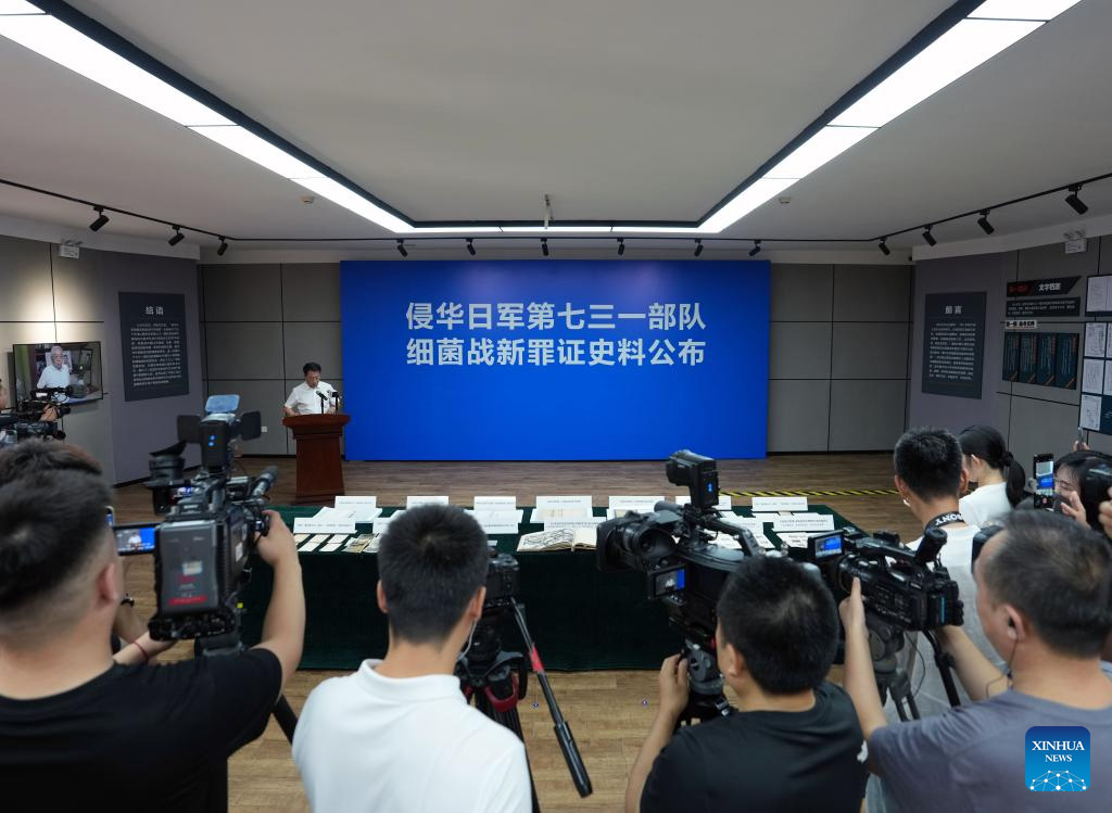 The unveiling of new evidence of Unit 731 is held at the Exhibition Hall of Evidences of Crime Committed by Unit 731 of the Japanese Imperial Army in Harbin, northeast China's Heilongjiang Province, Aug. 15, 2025.