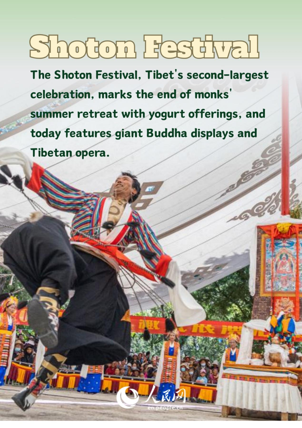 The Shoton Festival, also known as the Yogurt Banquet Festival, is the second-largest traditional celebration mainly held in Lhasa, southwest China's Xizang Autonomous Region.