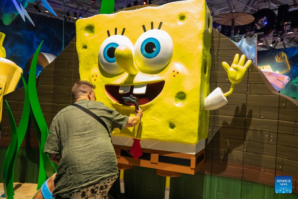 A man films a model at Gamescom 2025 in Cologne, Germany, on Aug. 20, 2025. Gamescom 2025, one of the world's largest trade fairs for computer and video games, kicked off here on Wednesday with a record 1,500 exhibitors, highlighting both the industry's global reach and the growing footprint of Chinese developers. (Xinhua/Zhang Fan)