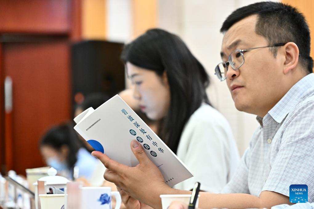 Participants read the report titled "The Truths about the South China Sea" at a seminar in Beijing, capital of China, Aug. 21, 2025. (Xinhua/Li Xin)