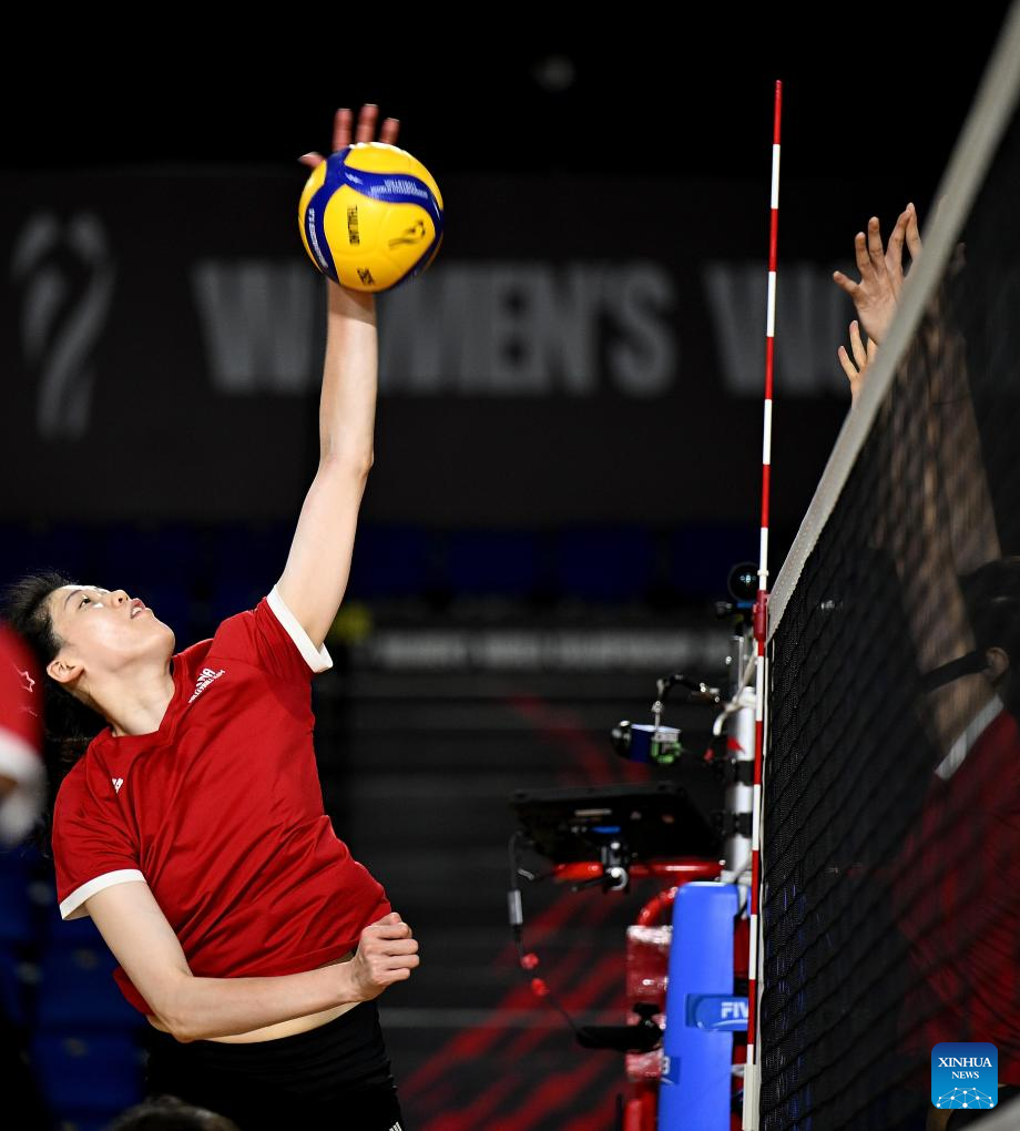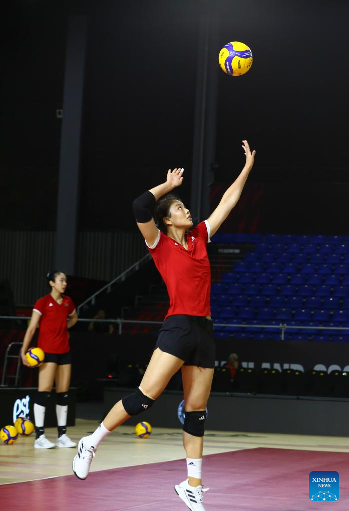Li Yingying of team China takes part in a training session ahead of the FIVB Women's Volleyball World Championship in Chiang Mai, Thailand, Aug. 21, 2025. (Xinhua/Hou Zhaokang)