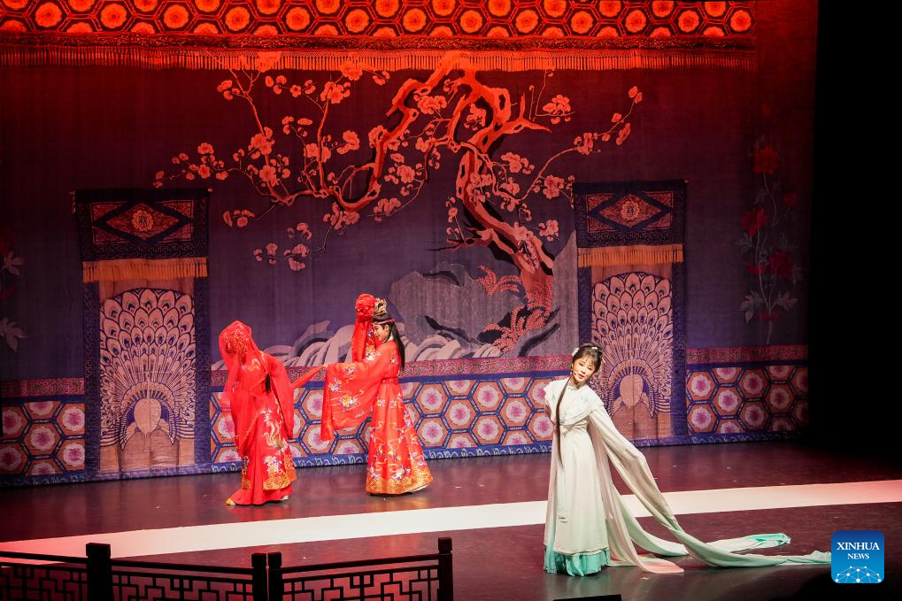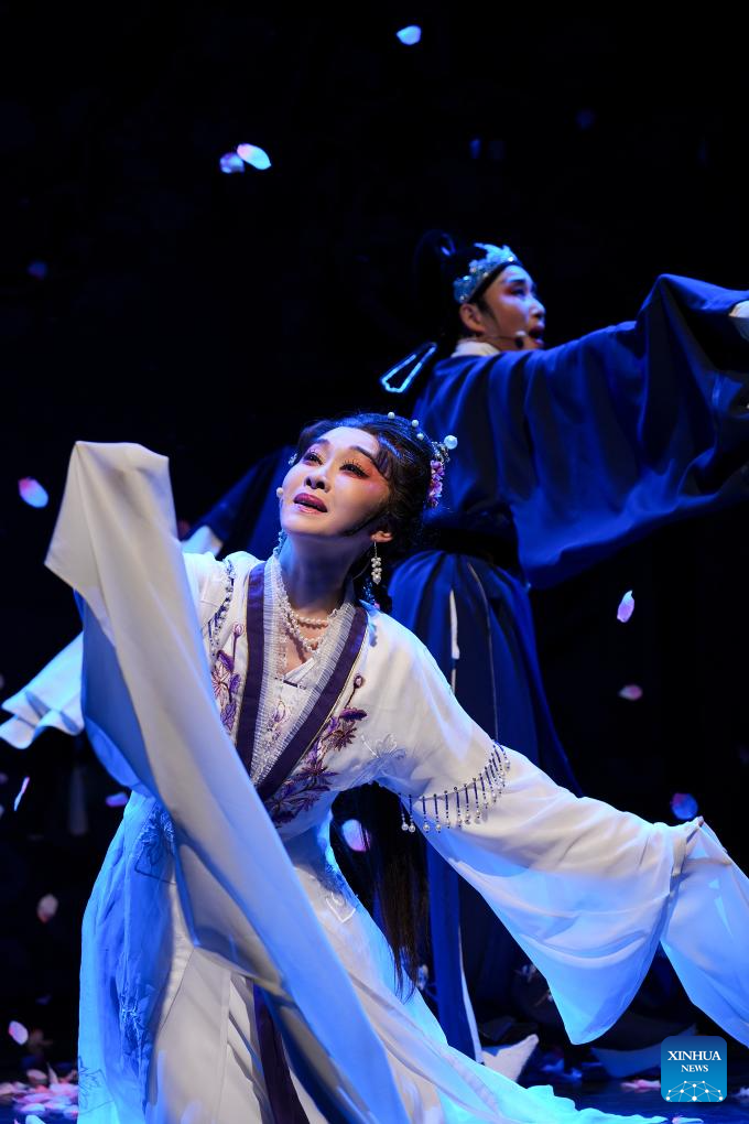 LONDON, Aug. 22 (Xinhua) -- At London's Shaw Theatre on Thursday night, the delicate notes of traditional Chinese musical instrument sheng, paired with gentle narration, soft singing, and graceful movements of Yue Opera, drew the audience into a world of romance and artistry.