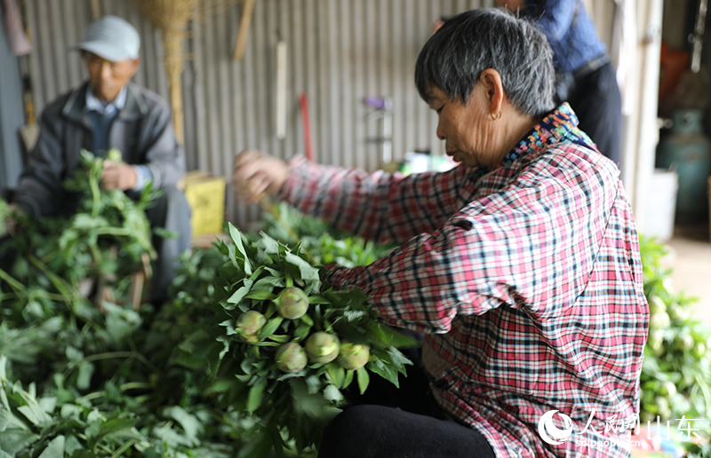 Villagers arrange fresh-cut flowers in Mudan district, Heze, east China's Shandong Province. (People's Daily Online/Liu Qi)