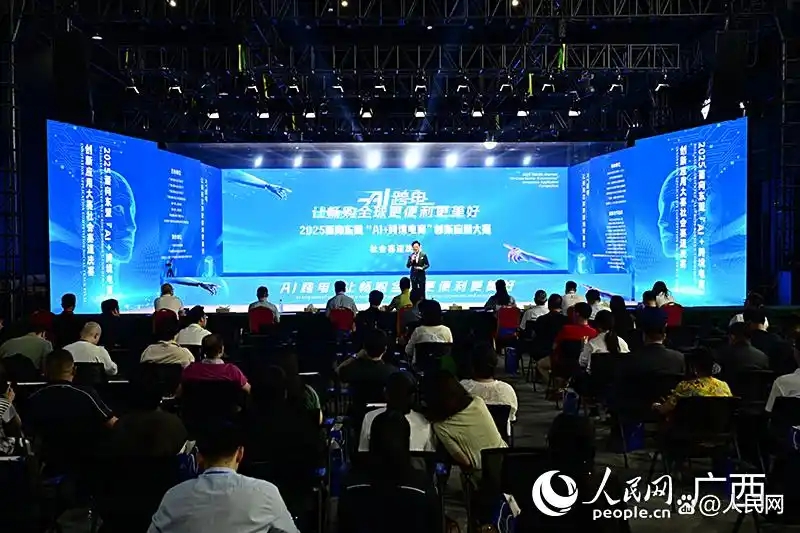 Photo shows the final round of the social track of the 2025 China-ASEAN "AI+Cross-Border E-Commerce" Innovative Application Competition, held on Aug. 24, 2025 in Nanning, south China's Guangxi Zhuang Autonomous Region. (People's Daily Online/Lei Qijun)