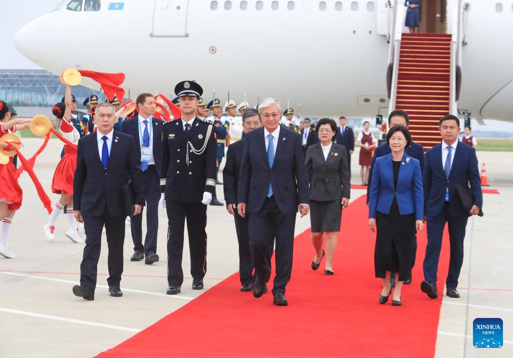 Kazakh President Kassym-Jomart Tokayev arrives for the Shanghai Cooperation Organization (SCO) Summit 2025 in Tianjin, north China, Aug. 30, 2025. (Xinhua/Yang Qing)