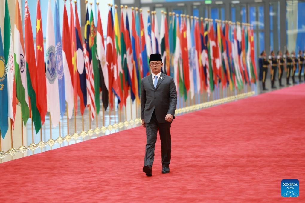 Maldivian President Mohamed Muizzu arrives at the Meijiang Convention and Exhibition Center for a welcoming banquet in Tianjin, north China, Aug. 31, 2025. Chinese President Xi Jinping and his wife, Peng Liyuan, on Sunday hosted a banquet in China's port city of Tianjin to welcome international guests who are here to attend the Shanghai Cooperation Organization (SCO) Summit 2025. (Xinhua/Ding Haitao)