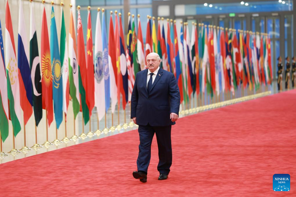 Belarusian President Alexander Lukashenko arrives at the Meijiang Convention and Exhibition Center for a welcoming banquet in Tianjin, north China, Aug. 31, 2025. Chinese President Xi Jinping and his wife, Peng Liyuan, on Sunday hosted a banquet in China's port city of Tianjin to welcome international guests who are here to attend the Shanghai Cooperation Organization (SCO) Summit 2025. (Xinhua/Ding Haitao)