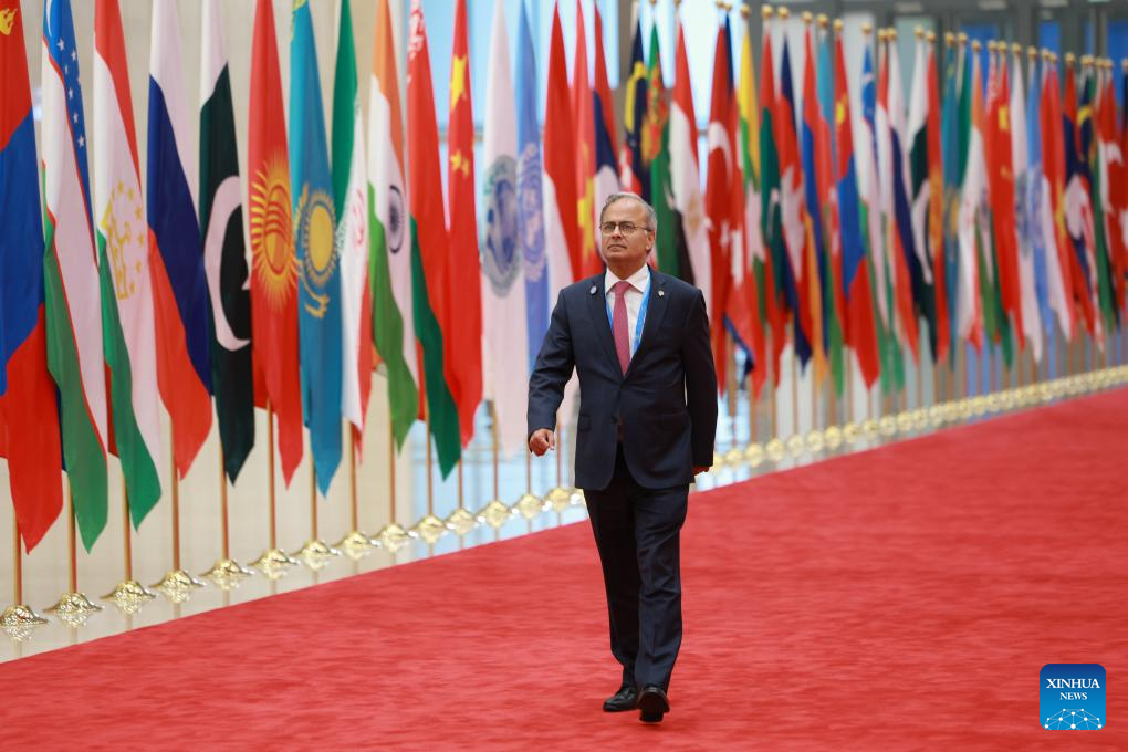 Secretary-General of the Economic Cooperation Organization Asad Khan arrives at the Meijiang Convention and Exhibition Center for a welcoming banquet in Tianjin, north China, Aug. 31, 2025. Chinese President Xi Jinping and his wife, Peng Liyuan, on Sunday hosted a banquet in China's port city of Tianjin to welcome international guests who are here to attend the Shanghai Cooperation Organization (SCO) Summit 2025. (Xinhua/Ding Haitao)