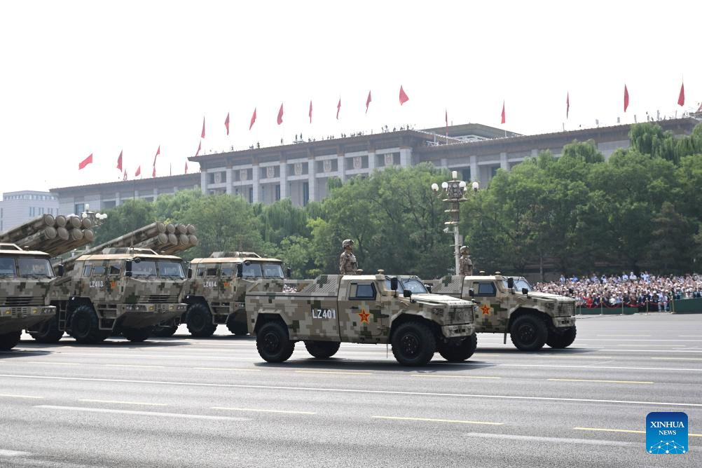 The long-range artillery formation attends a parade during a grand gathering to commemorate the 80th anniversary of the victory in the Chinese People's War of Resistance against Japanese Aggression and the World Anti-Fascist War in Beijing, capital of China, Sept. 3, 2025. (Xinhua/Yang Guanyu)