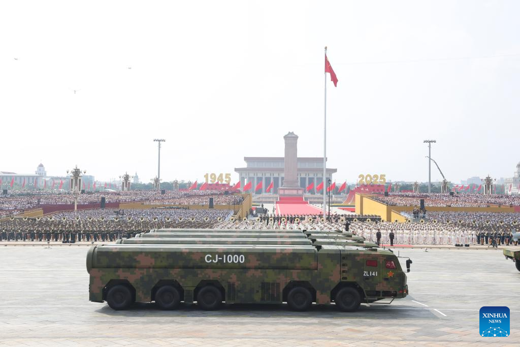 The long-range artillery formation attends a military parade in Beijing, capital of China, Sept. 3, 2025. China on Wednesday held a grand gathering to commemorate the 80th anniversary of the victory in the Chinese People's War of Resistance against Japanese Aggression and the World Anti-Fascist War. (Xinhua/Yao Dawei)