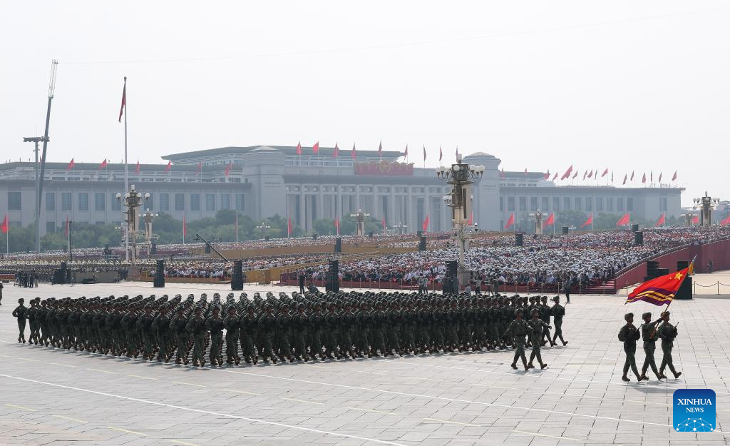 Foot formations attend a military parade in Beijing, capital of China, Sept. 3, 2025. China on Wednesday held a grand gathering to commemorate the 80th anniversary of the victory in the Chinese People's War of Resistance against Japanese Aggression and the World Anti-Fascist War. (Xinhua/Wang Peng)