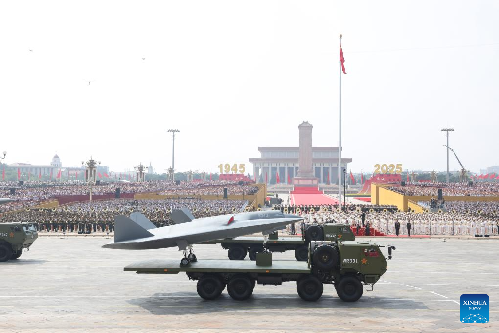 The airborne unmanned warfare formation attends a military parade in Beijing, capital of China, Sept. 3, 2025. China on Wednesday held a grand gathering to commemorate the 80th anniversary of the victory in the Chinese People's War of Resistance against Japanese Aggression and the World Anti-Fascist War. (Xinhua/Chen Bin)