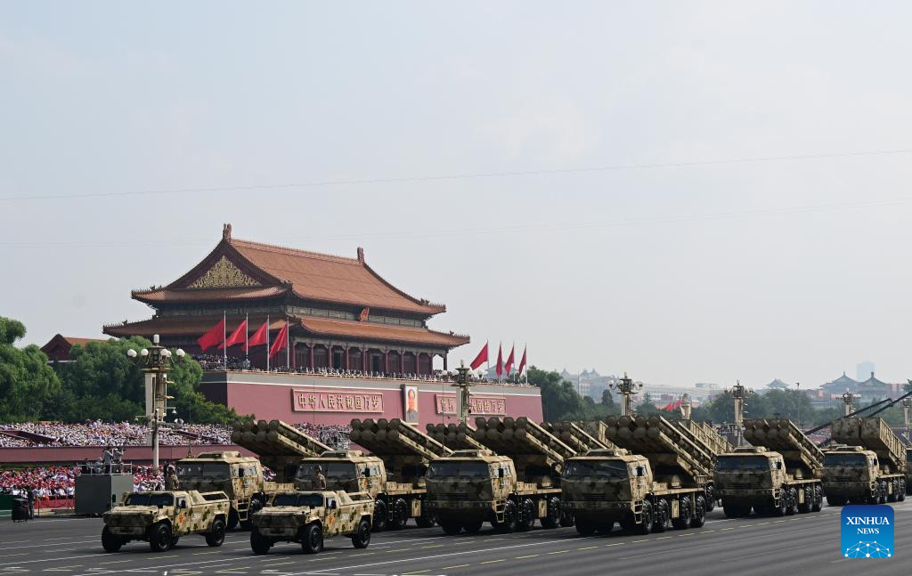 The long-range artillery formation attends a military parade in Beijing, capital of China, Sept. 3, 2025. China on Wednesday held a grand gathering to commemorate the 80th anniversary of the victory in the Chinese People's War of Resistance against Japanese Aggression and the World Anti-Fascist War. (Xinhua/Xiong Qi)