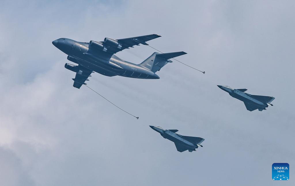 The refueler and receiver echelon attends a military parade in Beijing, capital of China, Sept. 3, 2025. China on Wednesday held a grand gathering to commemorate the 80th anniversary of the victory in the Chinese People's War of Resistance against Japanese Aggression and the World Anti-Fascist War. (Xinhua/Sun Fanyue)