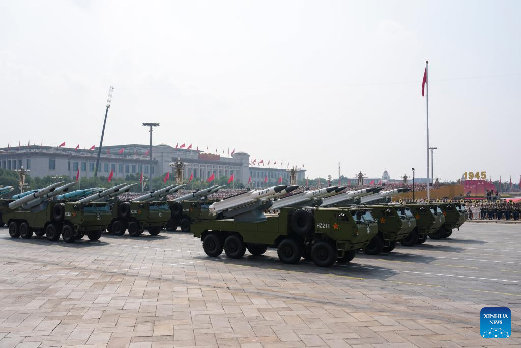 The anti-ship missile formation attends a military parade in Beijing, capital of China, Sept. 3, 2025. China on Wednesday held a grand gathering to commemorate the 80th anniversary of the victory in the Chinese People's War of Resistance against Japanese Aggression and the World Anti-Fascist War. (Xinhua/Ju Huanzong)