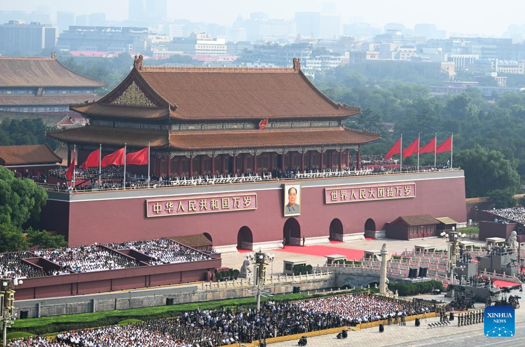 A grand gathering to commemorate the 80th anniversary of the victory in the Chinese People's War of Resistance against Japanese Aggression and the World Anti-Fascist War is held in Beijing, capital of China, Sept. 3, 2025. (Xinhua/Li Xiang)