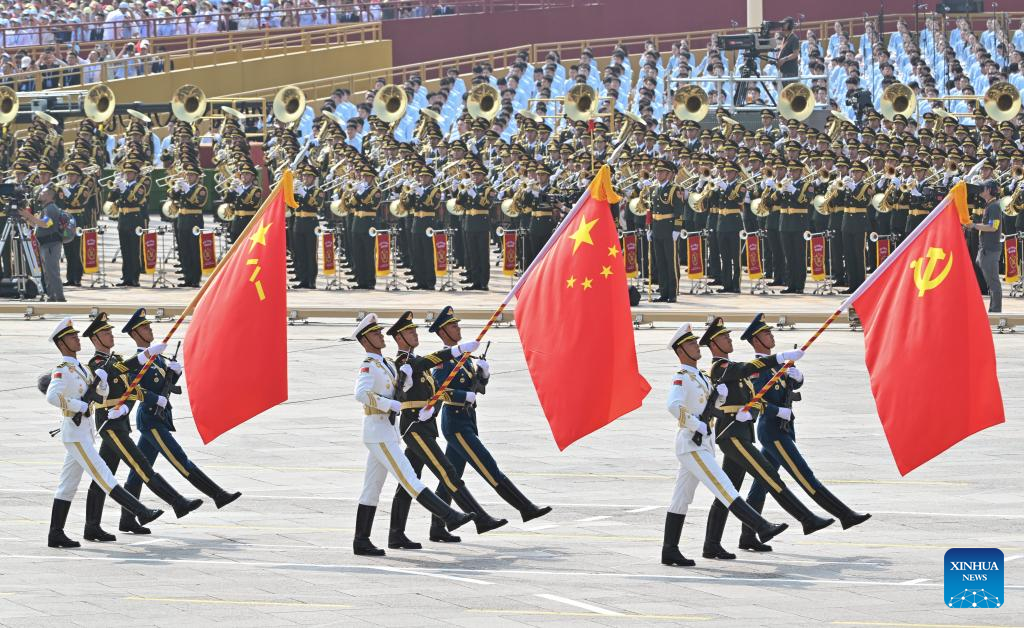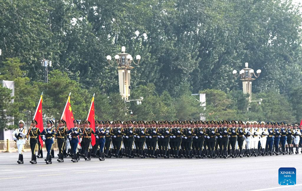 The People's Liberation Army (PLA) Guards of Honor formation attends a parade during a grand gathering to mark the 80th anniversary of the victory in the Chinese People's War of Resistance against Japanese Aggression and the World Anti-Fascist War in Beijing, capital of China, Sept. 3, 2025. (Xinhua/Wu Gang)