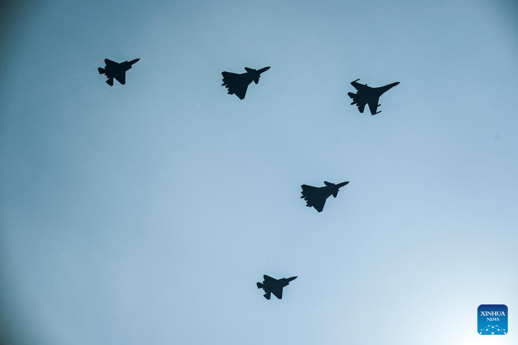 The fighter jets echelon attends a military parade in Beijing, capital of China, Sept. 3, 2025. China on Wednesday held a grand gathering to commemorate the 80th anniversary of the victory in the Chinese People's War of Resistance against Japanese Aggression and the World Anti-Fascist War. (Xinhua/Sun Ruibo)