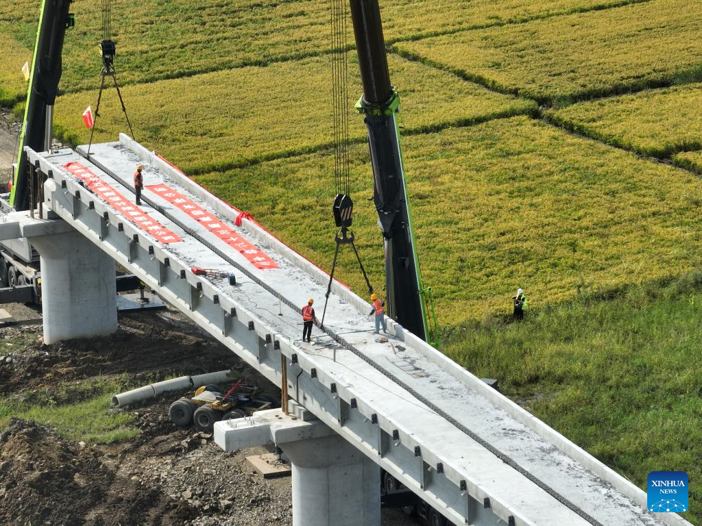 The 10,435-meter bridge has adopted a single-track T-beam structure, and is expected to see all its beams erected by August 2026. (Xinhua/Wang Song)