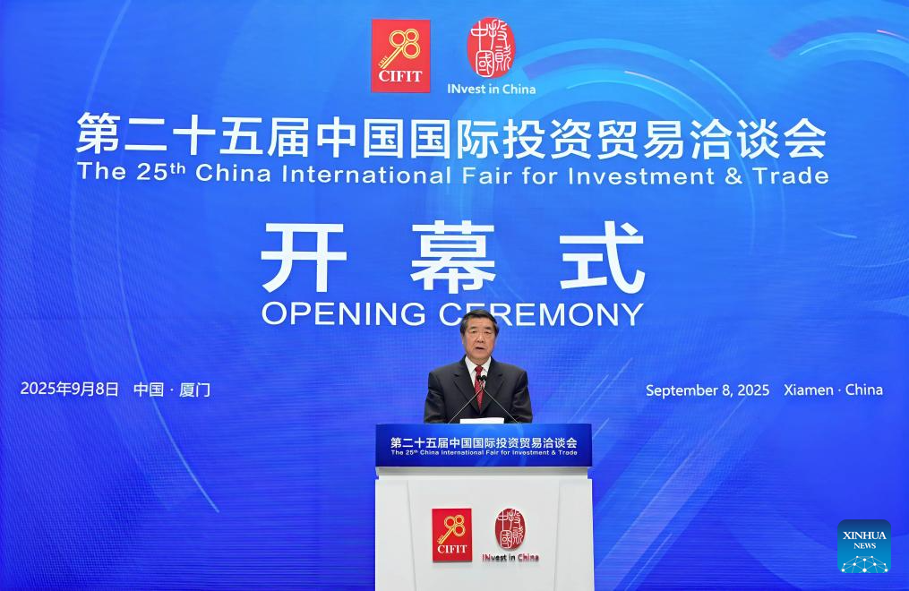 XIAMEN, Sept. 8 (Xinhua) -- Chinese Vice Premier He Lifeng delivered a speech at the opening ceremony of the 25th China International Fair for Investment and Trade (CIFIT) on Monday in Xiamen, east China's Fujian Province.