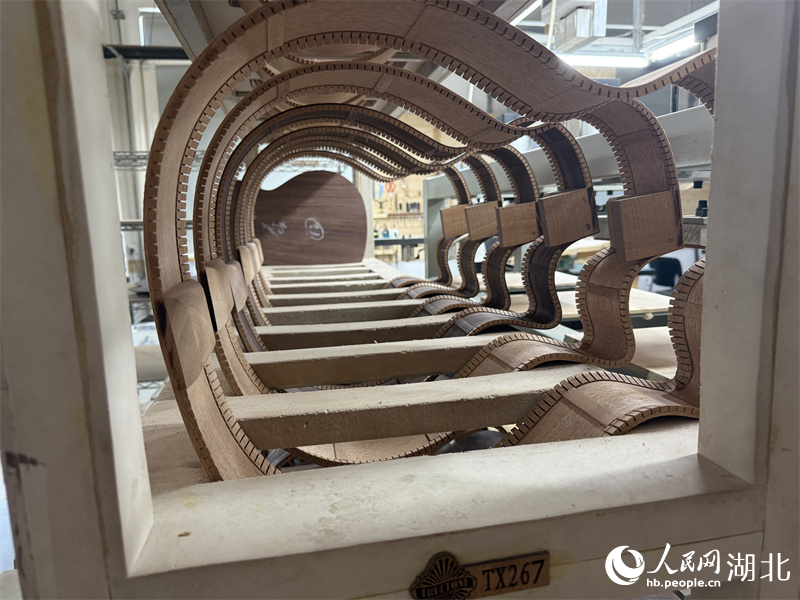 Semi-finished guitars sit at a factory in Songzi city, a county-level city administered by Jingzhou, central China's Hubei Province. (People's Daily Online/Zhang Jun)